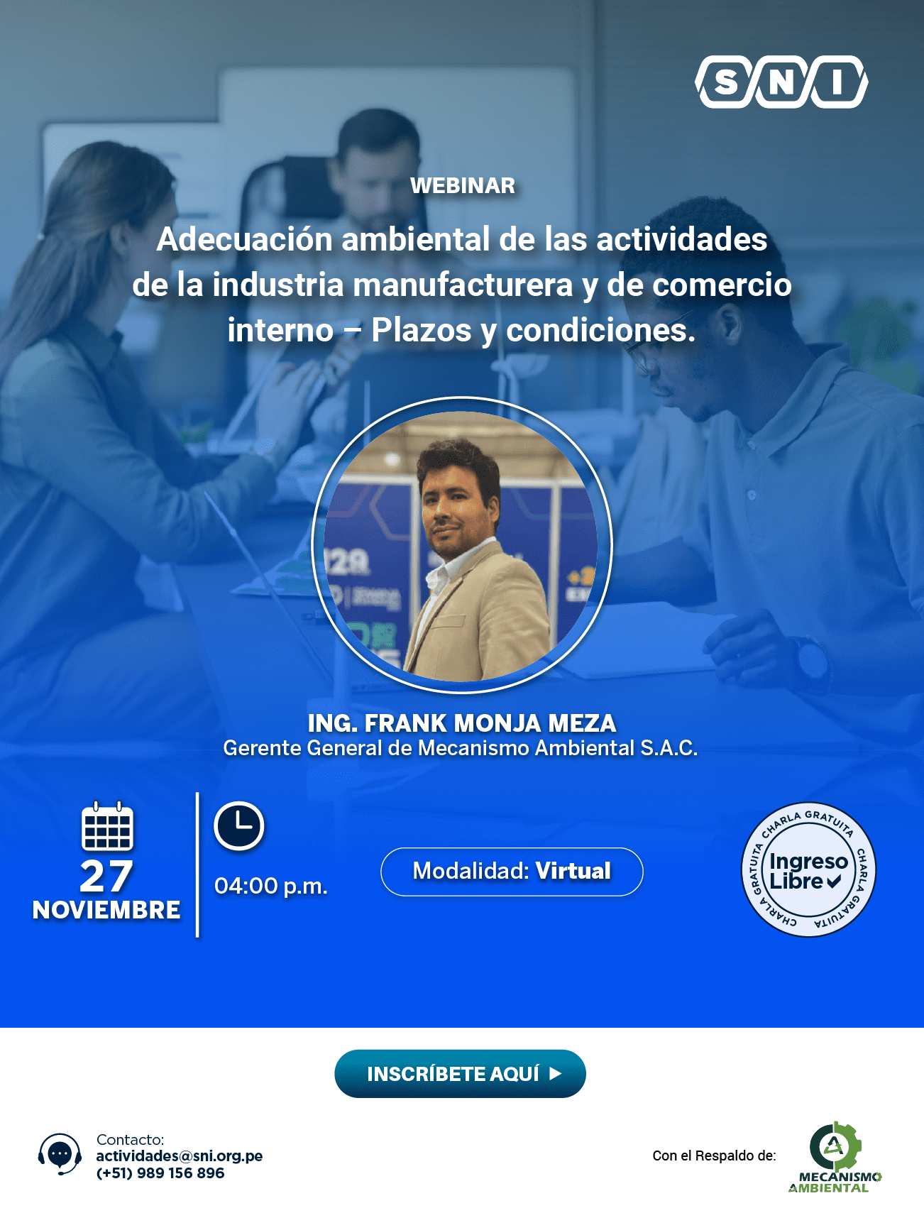 octubre, 2025 Webinar: Adecuación ambiental de las actividades de la industria manufacturera y de comercio interno – Plazos y condiciones 29octDestacadoWebinar: Adecuación ambiental de las actividades de la industria manufacturera y de comercio interno – Plazos y condiciones Detalles del evento Detalles del evento Tiempo(Miércoles) Organizador Atención al Asociado CalendarioCalendario de Google